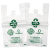 T-Shirt plastic bags are the formal name for bags often used in grocery stores, pharmacies, and convenience store. Made of plastic, they have handles on the side that make them look like sleeveless t-shirts, thus accounting for their name.