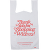 • 1/6 BBL 11.5"X6"X21" Self Opening Easy Open System Heavy Duty Italic 'Thank You' Print White Embossed T-Shirt Bag - 600 bags/cs